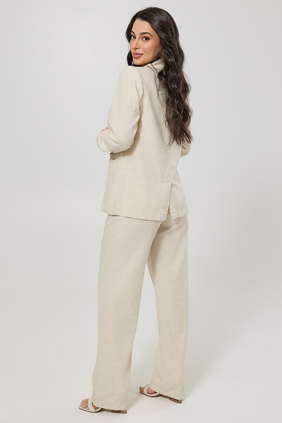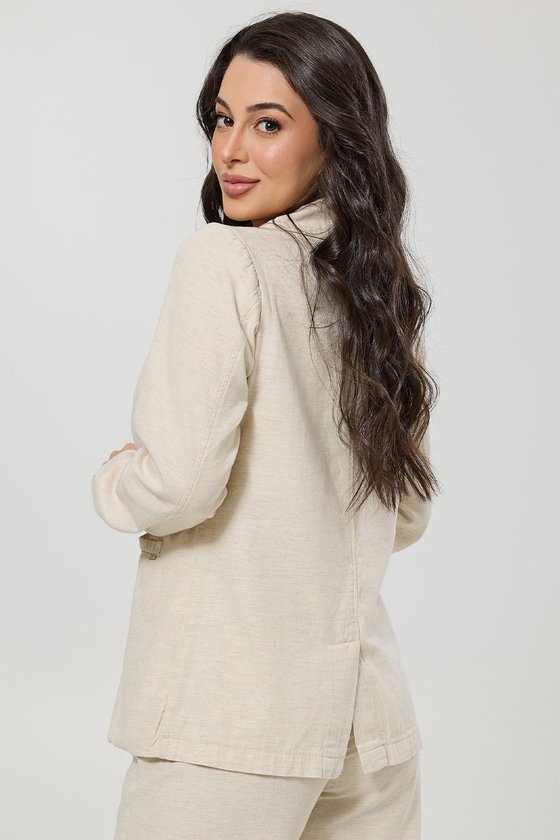 Blazer Intermediário em MixLinho - Fernanda é uma peça que traduz sofisticação com leveza e conforto. Desenvolvido em um tecido nobre que combina algodão, viscose e linho, oferece um caimento natural, toque macio e respirabilidade, ideal para acompanhar você em diferentes estações. Com design atemporal, possui modelagem intermediária que se ajusta perfeitamente à silhueta sem perder a elegância. O fechamento frontal conta com botões encapados no mesmo tecido, trazendo um acabamento refinado e discreto. Os bolsos funcionais adicionam praticidade ao visual, enquanto a fenda italiana nas costas garante maior mobilidade e conforto ao vestir. Versátil e fácil de combinar, é uma peça que transita do look de trabalho ao encontro casual, podendo ser usada em conjunto com calças de alfaiataria, saias midi ou mesmo com jeans, criando produções modernas e elegantes.