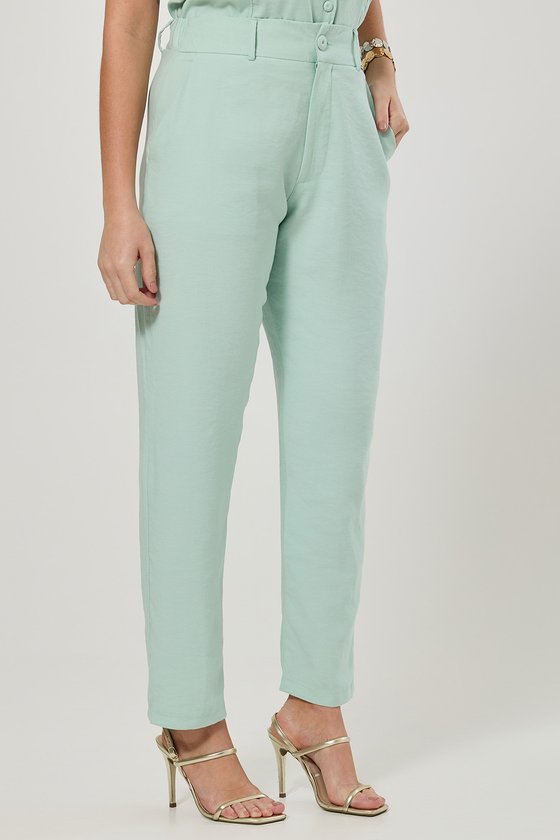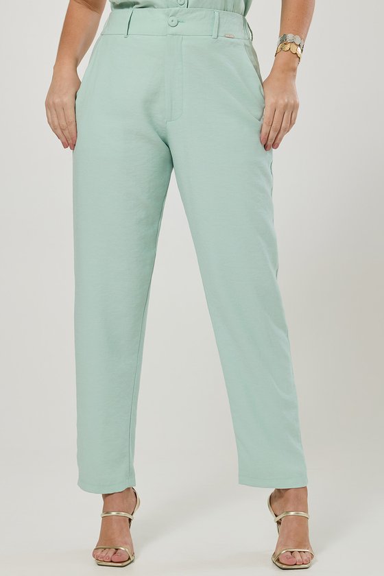 Calça Reta de Alfaiataria em Viscose Verde Água