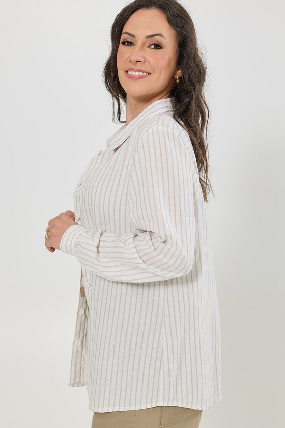 Camisa Comfy de Algodão Listrado Cru