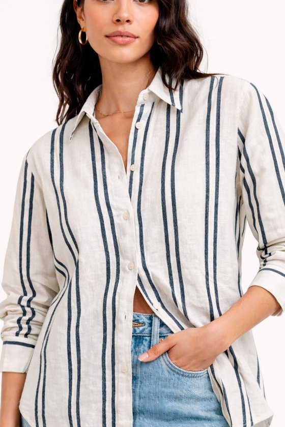 A modelagem comfy apresenta caimento levemente solto, proporcionando fluidez e liberdade de movimento. O colarinho clássico estruturado traz equilíbrio entre o casual e o refinado, enquanto o fechamento frontal por botões claros mantém a estética clean e atemporal. As mangas longas possuem punhos ajustados por botão, permitindo versatilidade no uso, dobradas para um visual descontraído ou fechadas para uma proposta mais alinhada.