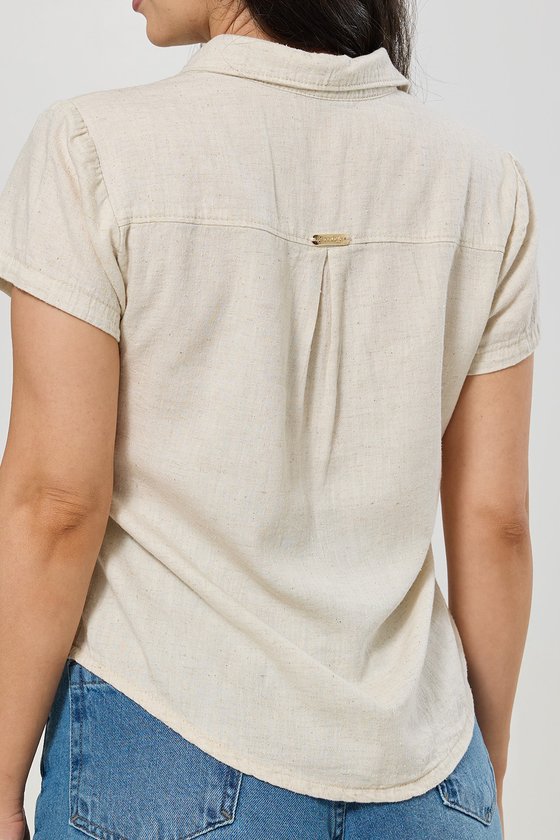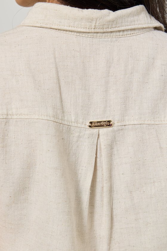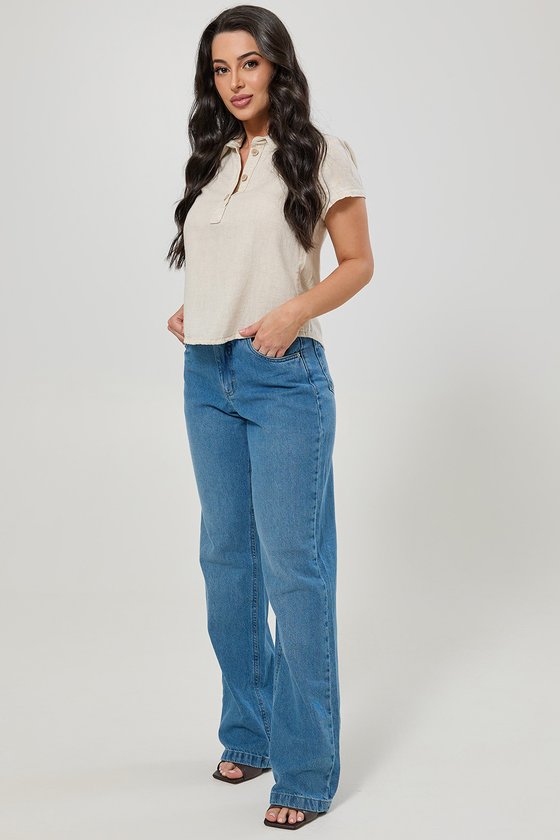 Produzida em um mix natural de algodão, viscose e linho, oferece toque macio, frescor e caimento leve, tornando-se ideal para os dias mais quentes. O modelo apresenta gola polo clássica com abertura frontal e fechamento por botões, detalhe que traz elegância e versatilidade para a peça. As mangas curtas proporcionam praticidade, enquanto o corte moderno valoriza diferentes tipos de corpo, entregando estilo sem abrir mão do bem-estar. Com um visual clean e natural, é uma peça versátil que pode ser combinada facilmente com calças, saias ou shorts, transitando entre looks casuais e sofisticados.