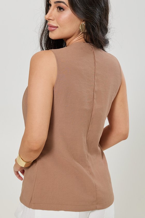 Colete Alongado de Alfaiataria combina elegância e versatilidade em uma peça atemporal, destaca-se também por sua modelagem. Confeccionado em tecido de alta qualidade, com composição de viscose e poliéster, oferece toque macio, caimento fluido e estrutura levemente encorpada, proporcionando conforto e sofisticação ao vestir. Seu design conta com decote em U. O fechamento frontal com botões encapados no mesmo tecido, que garantem um acabamento uniforme e refinado. Os bolsos funcionais com lapela adicionam praticidade sem abrir mão do estilo, enquanto a modelagem alongada valoriza a silhueta e confere um visual moderno e alongado. Na cor Marrom, a peça transita facilmente entre produções formais e casuais, podendo ser usada sozinha ou sobreposta a blusas para compor looks elegantes e atuais.