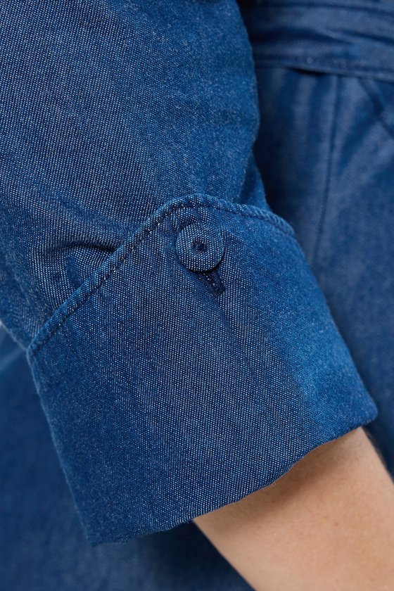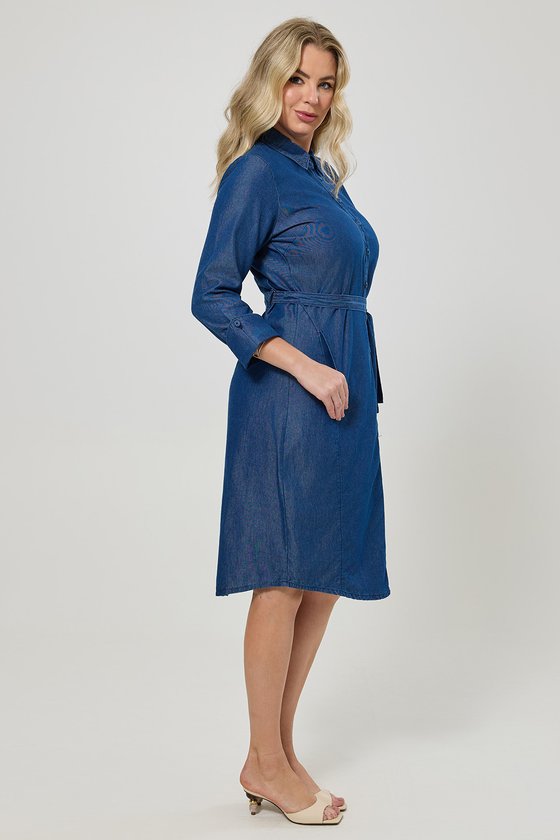 Vestido Chemise Midi Jeans Leve com cinto – Livia é a escolha perfeita para quem busca leveza e praticidade sem abrir mão do estilo. Confeccionado em um tecido que combina algodão e liocel, oferece um toque suave, respirabilidade e um caimento fluido que acompanha os movimentos com naturalidade. O algodão traz conforto e frescor, enquanto o liocel, fibra de origem sustentável, garante maciez e resistência, além de um brilho sutil ao tecido. O modelo conta com fechamento frontal por botões encapados no mesmo tecido, bolsos funcionais para mais praticidade e passantes para cinto que permitem ajustar a peça na cintura, valorizando a silhueta. O punho diferenciado adiciona charme, e o comprimento midi deixa o visual moderno e versátil. Em tom jeans médio e design atemporal, é perfeito tanto para o dia a dia quanto para produções mais elegantes.