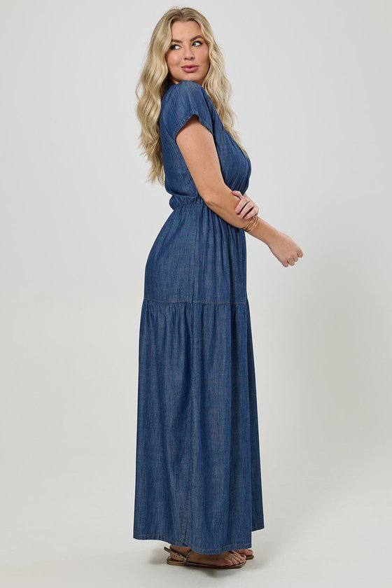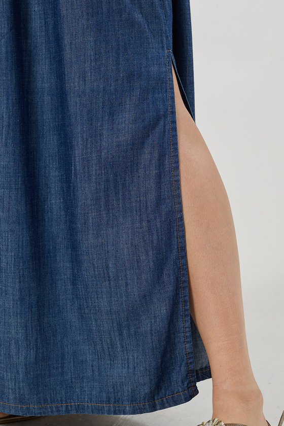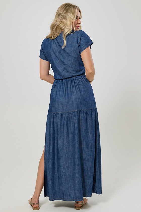 Confeccionado em uma composição leve de viscose e algodão, o Vestido Longo Jeans combina conforto, fluidez e um toque de sofisticação casual. O tecido tem caimento suave e toque macio, ideal para os dias em que você busca praticidade sem abrir mão do estilo.
